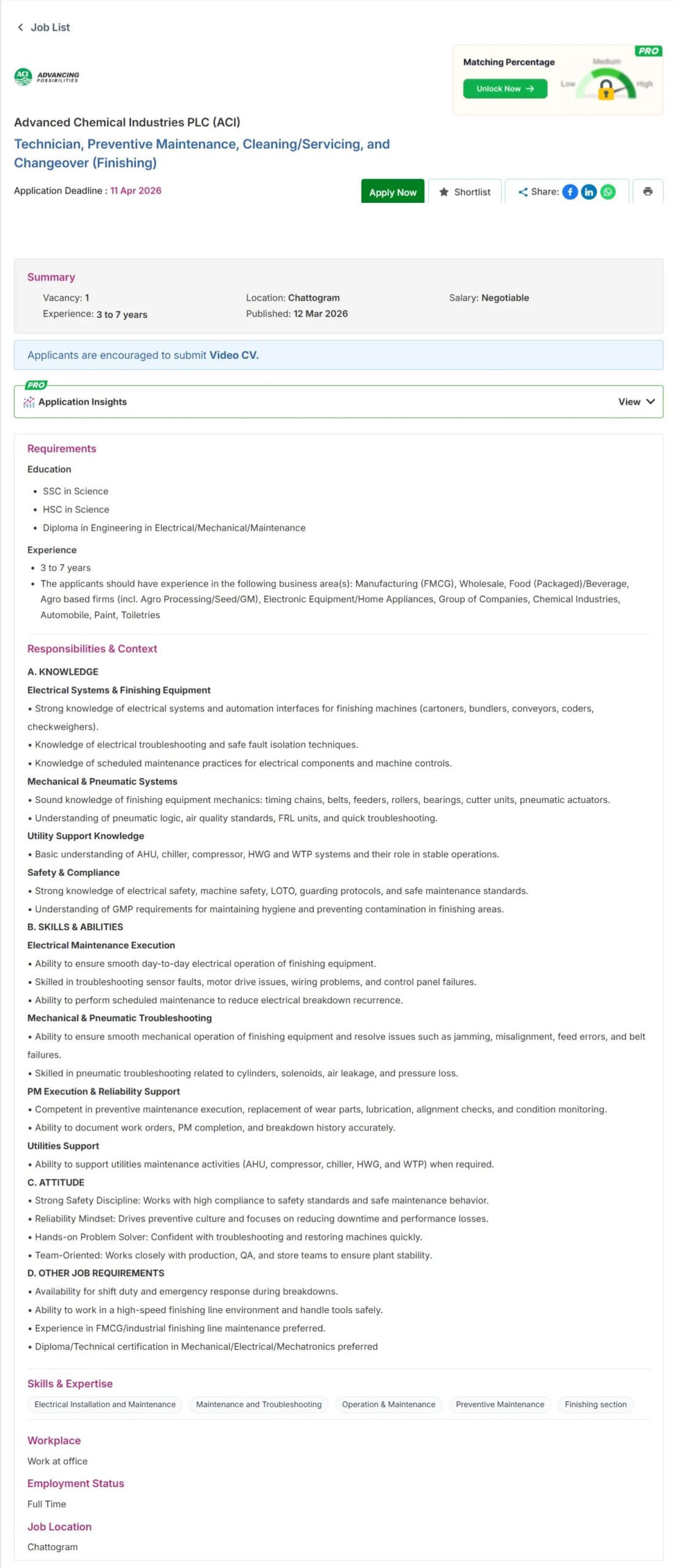আপনি যদি এসিআই কোম্পানিতে চাকরি করতে ইচ্ছুক হন তাহলে এই চাকরির বিজ্ঞপ্তির মাধ্যমে আবেদন করতে পারেন। বিজ্ঞপ্তিটিতে বাংলাদেশের সকল যোগ্যতা সম্পন্ন নারী-পুরুষ উভয় আবেদন করতে পারবে।