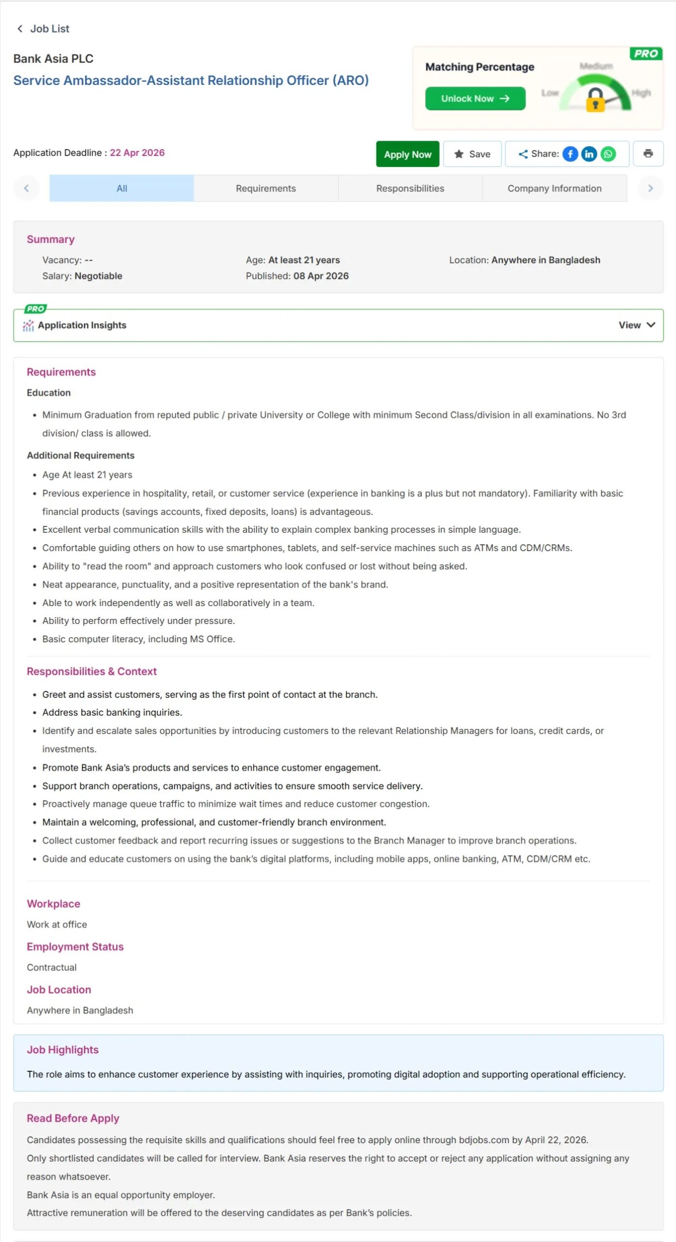 যদি আপনি ব্যাংক এশিয়া চাকরি করতে ইচ্ছুক, তাহলে দেরি না করে খুব দ্রুত কর্তৃপক্ষের দেওয়া নির্দেশ অনুযায়ী নির্দিষ্ট সময়ের মধ্যে আবেদন করুন। আপনার মধ্যে আবেদন করার জন্য কিছু যোগ্যতা থাকতে হবে। যা কর্তৃপক্ষকর্তৃক বলা হয়েছে?
