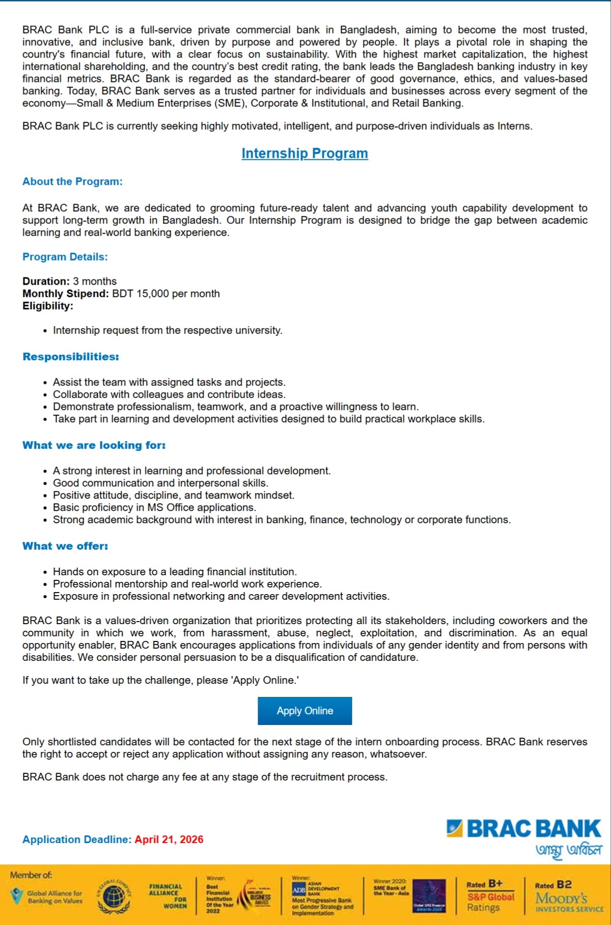 ব্র্যাক ব্যাংক লিমিটেড নিয়োগ বিজ্ঞপ্তি ২০২৬