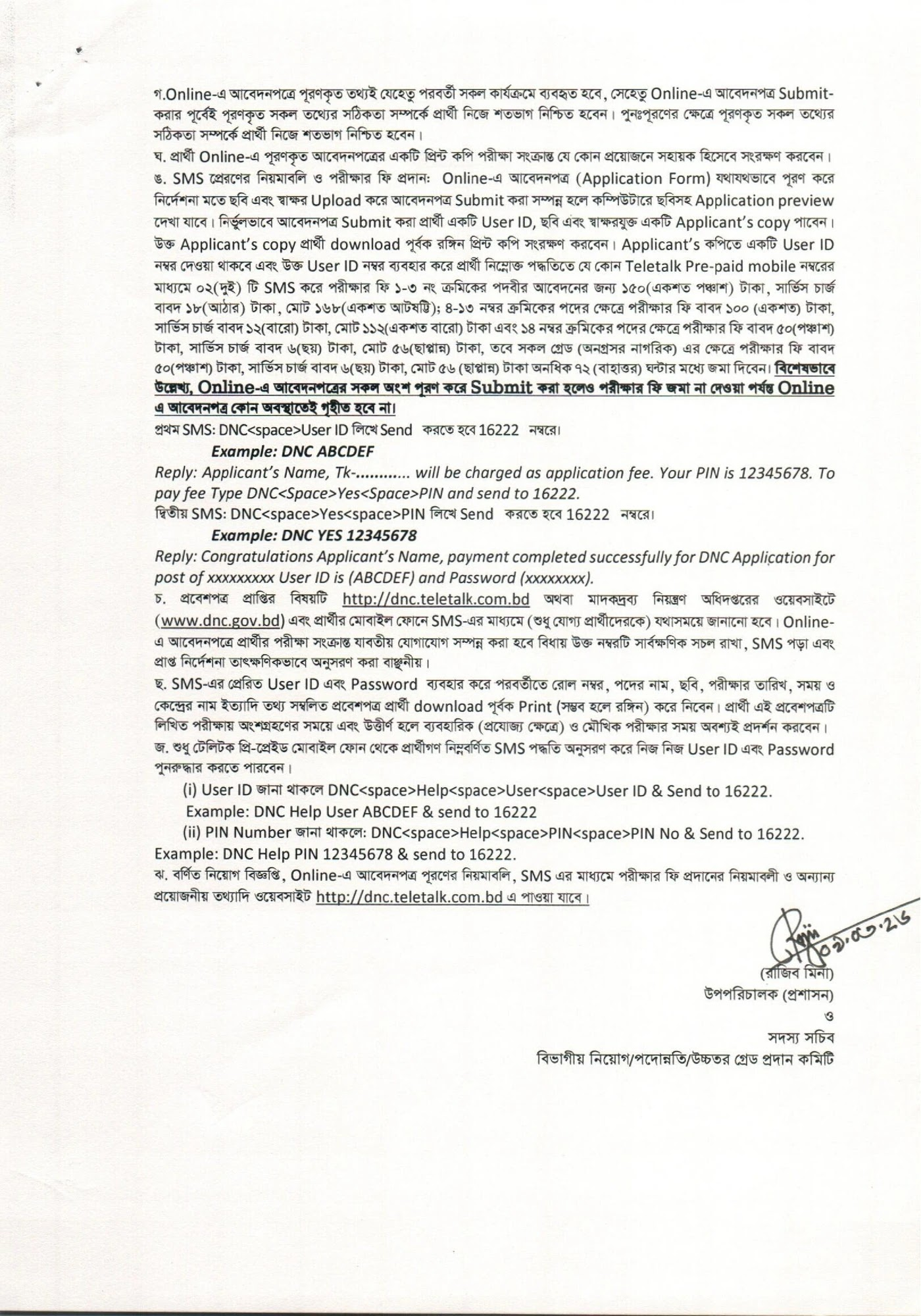 অফিসিয়াল ওয়েবসাইট : https://dnc.gov.bd