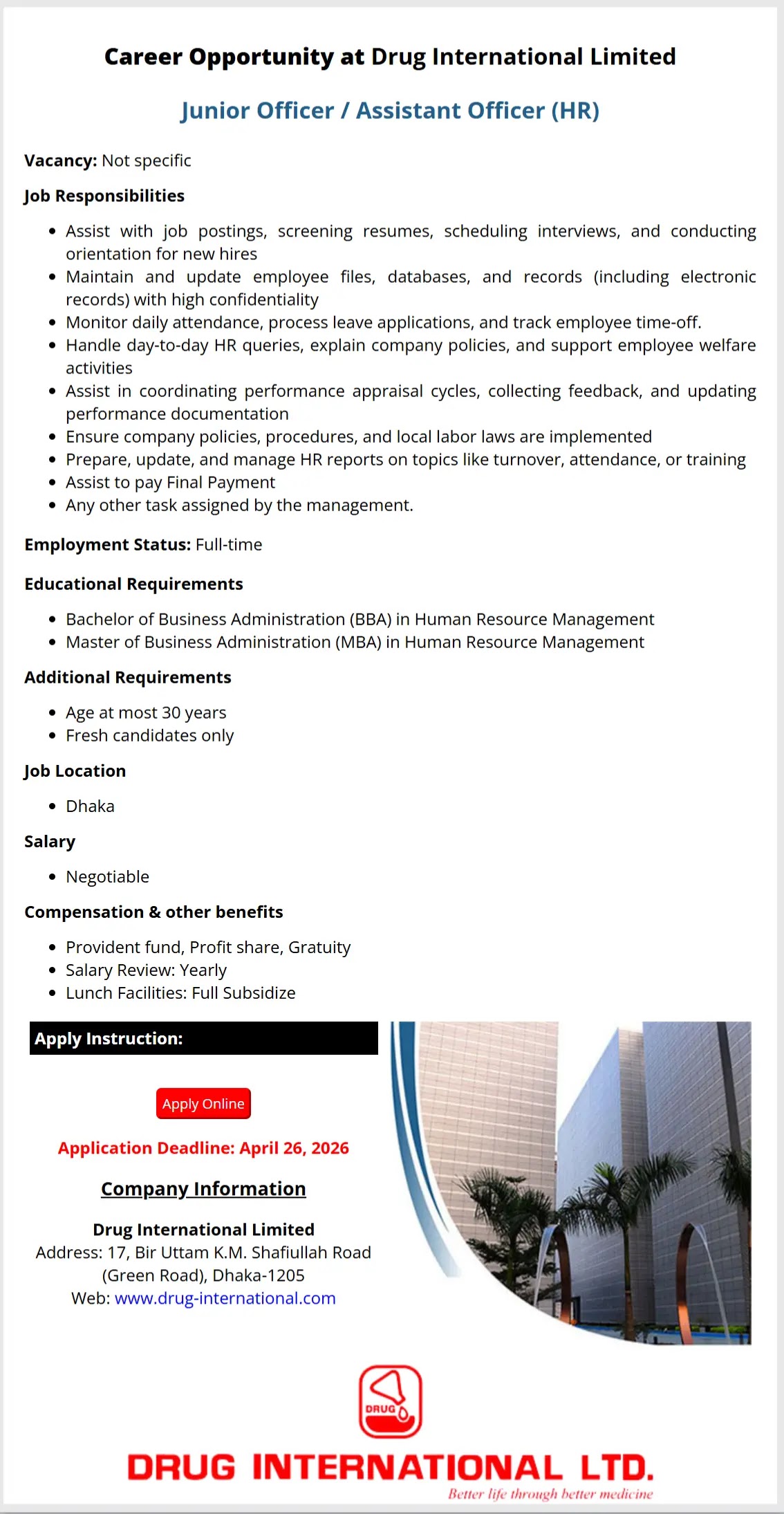 ড্রাগ ইন্টারন্যাশনাল লিমিটেড চাকরির বিজ্ঞপ্তি ২০২৬