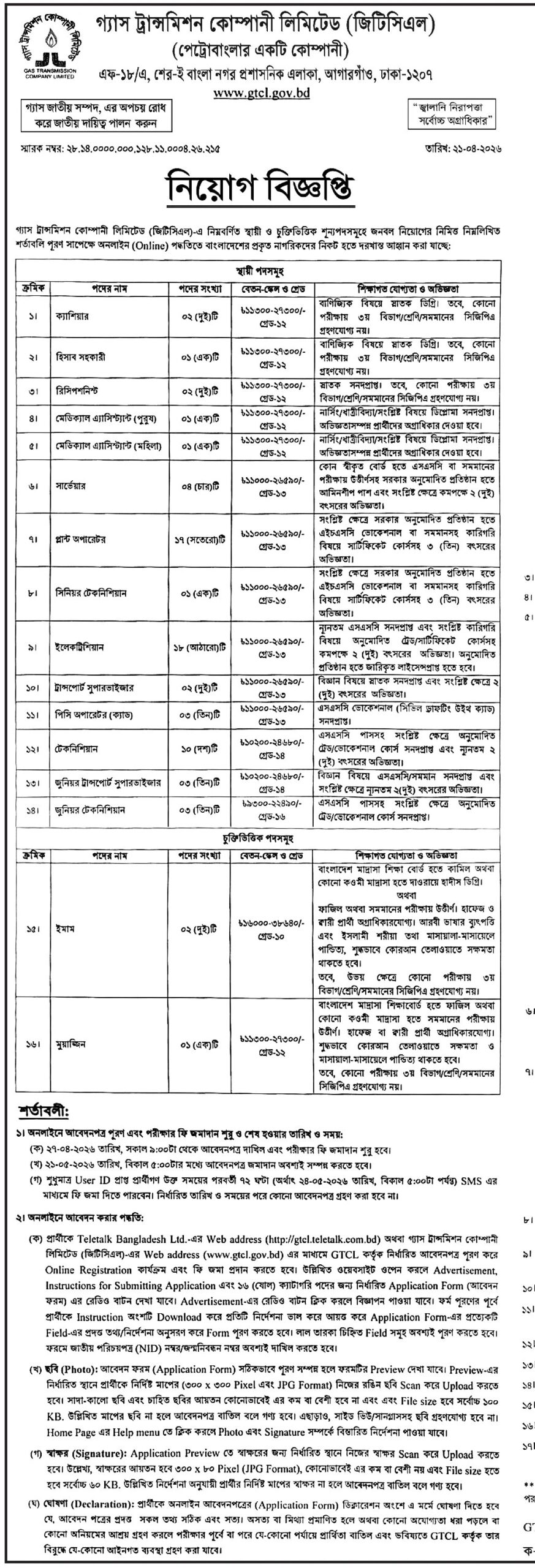 গ্যাস ট্রান্সমিশন কোম্পানি লিমিটেড চাকরির বিজ্ঞপ্তি 2026