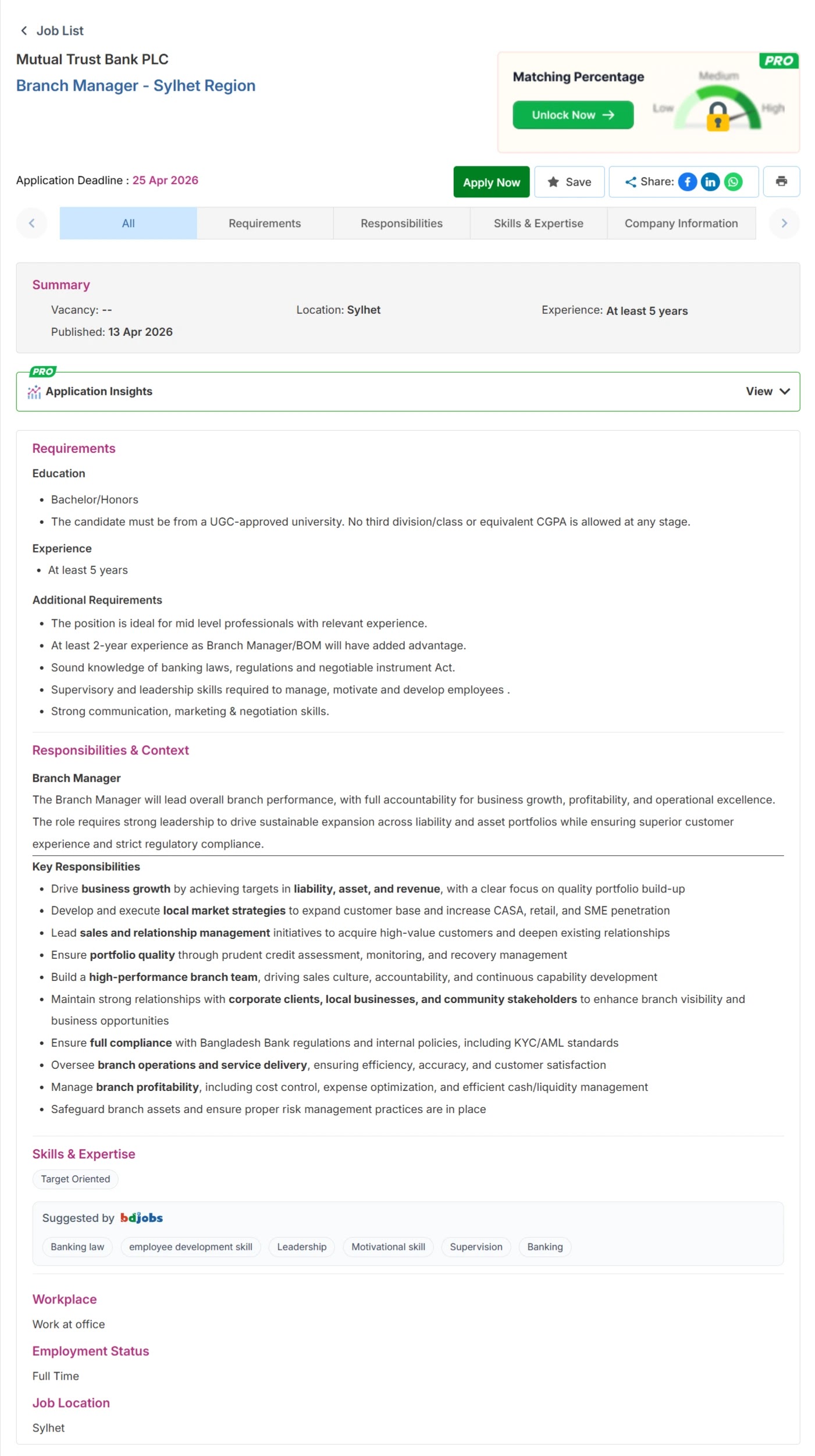 আবেদনের শেষ তারিখ : ২৫ এপ্রিল ২০২৬