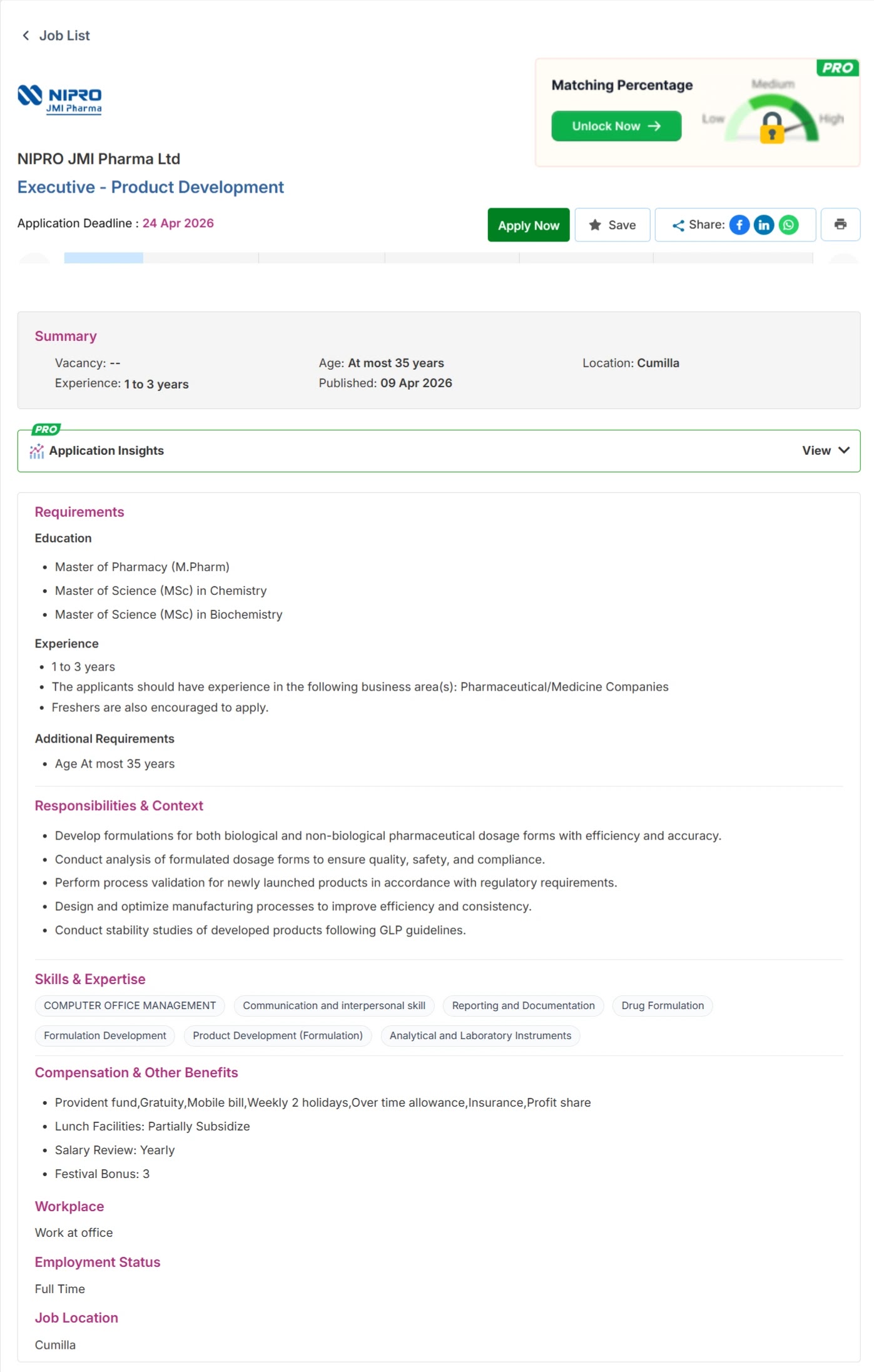 নিপ্রো জে এম আই ফার্মা লিমিটেড চাকরির বিজ্ঞপ্তি ২০২৬