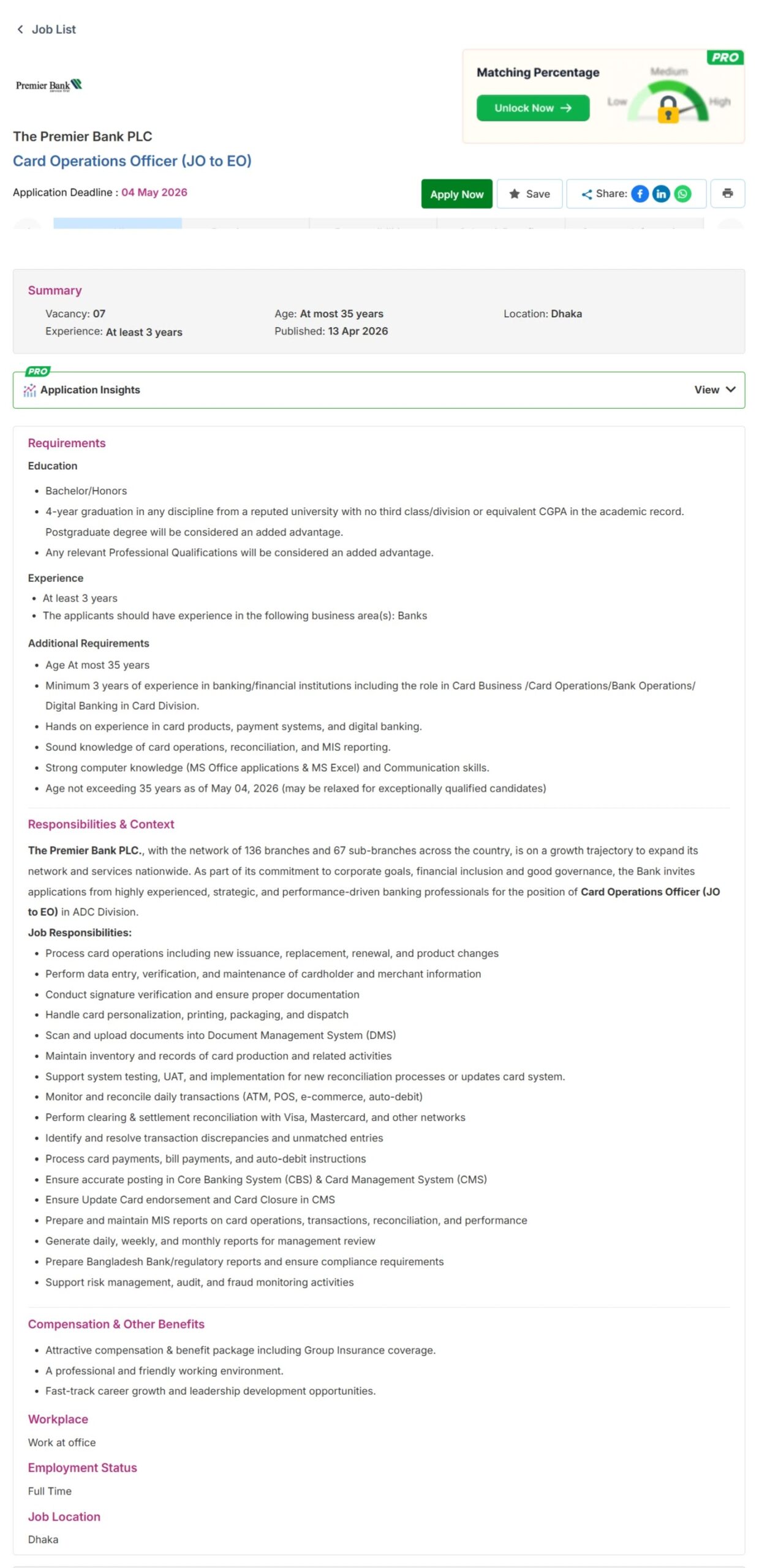 প্রিমিয়ার ব্যাংক লিমিটেড নিয়োগ বিজ্ঞপ্তি 2026