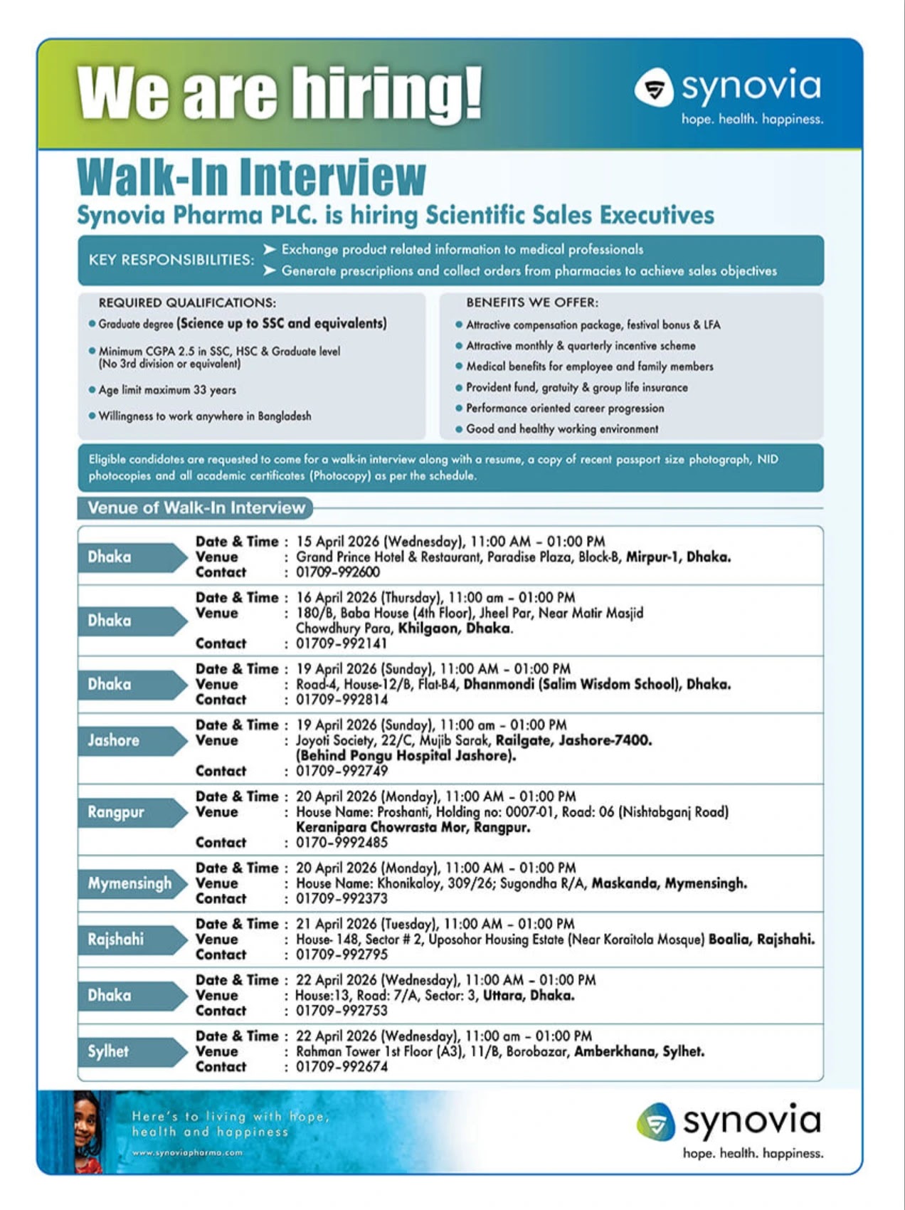 সাইনোভিয়া ফার্মা পিএলসি নিয়োগ অফিসিয়াল নোটিশ